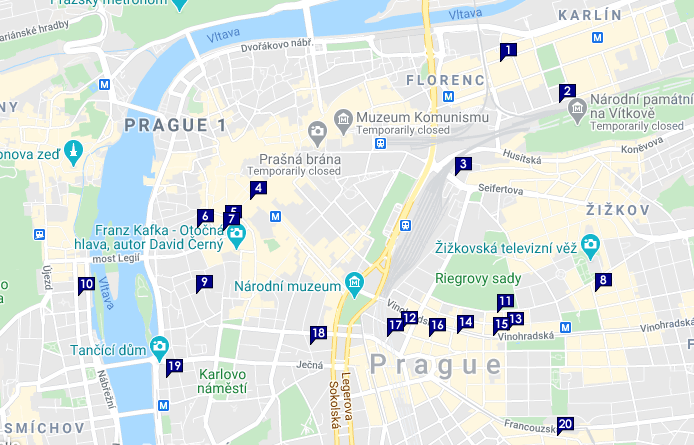 Prague Castle – Once home to Bohemian Kings and Queen this castle is now the official residence of the Czech Republic’s President. Construction on this masterpiece started in 870 AD and is the largest castle complex in the world. While visiting you may also see the St. Vitus Cathedral. You may purchase tickets and tours through their website or ask the concierge at the hotel for assistance. One way to go to or from this Castle is Tram No. 22. See notes below. Otherwise it is about a 20 – 30 minute walk from the hotel. 119 08 Praha 1