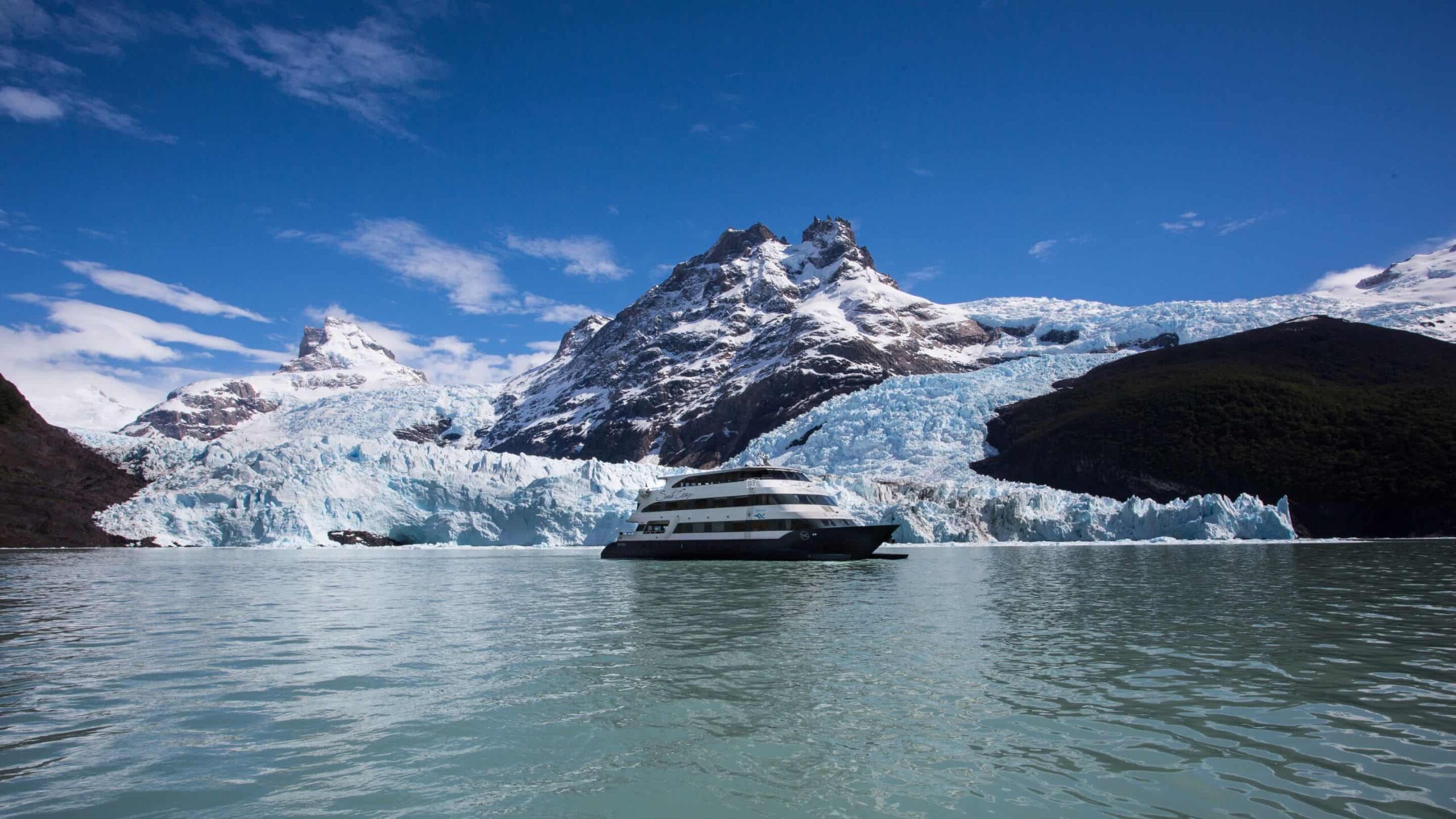 This morning, following breakfast at the hotel we depart for the Port of Punta Bandera, 47 km from El Calafate, where we start sailing through the North Arm of Lake Argentino. We cross the Boca del Diablo towards the Upsala Channel and to navigate among the large icebergs that break off from the front of the Upsala Glacier. Then we enter the Spegazzini Channel and moments later we will have the first view of the Dry Glacier. We continue sailing to the front of the Spegazzini Glacier where we will also contemplate the Heim Sur and Peineta glaciers. We prepare to disembark at the Spegazzini Base and begin the visit to the area walking through the forest path to the Spegazzini Refuge. This 300-meter trail is accessible and as we walk along it we stop at stations and viewpoints with views of the entire Bahía de Los Glaciares. At the Refuge, you will enjoy a three course lunch while you contemplate the landscape.