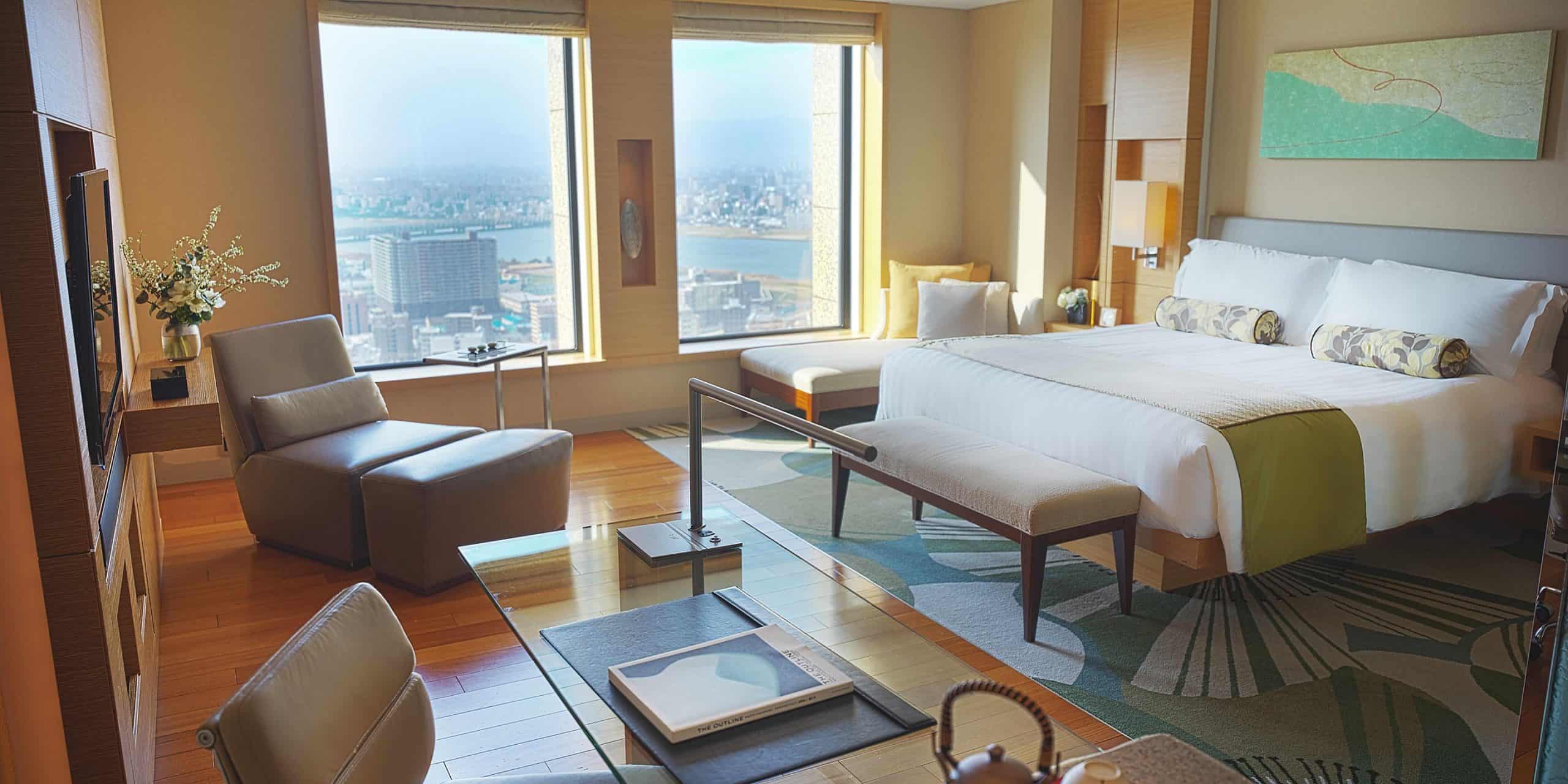Generously sized classic rooms are enhanced by floor-to-ceiling windows with stunning views of downtown Osaka. The stylish contemporary décor creates a serene atmosphere, while large bathrooms with rainfall showers and luxury BYREDO toiletries ensure that your stay is a comfortable one.