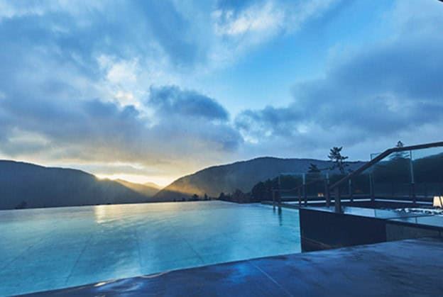 Hakone Kowakien Ten-yu is a traditional Japanese style inn (Ryokan) that focuses on the harmony of authentic Japanese hospitality and nature. You can watch the sunrise in the sky while bathing in enormous open-air onsens with infinite horizon views. All rooms have their own private open-air baths. The onsen water is said to be good for ailments like rheumatism, neuralgia, gout, and allergies.